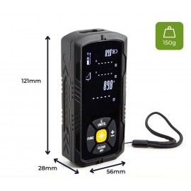 - Rango: El medidor tiene un impresionante rango de medicion de 0,05 a 50 metros, lo que lo hace adecuado tanto para espacios interiores pequeños como para grandes areas exteriores.