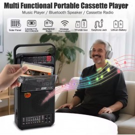 RADIO CASSETTE...Radio Cassette Retro con Cargador Solar con USB/TF